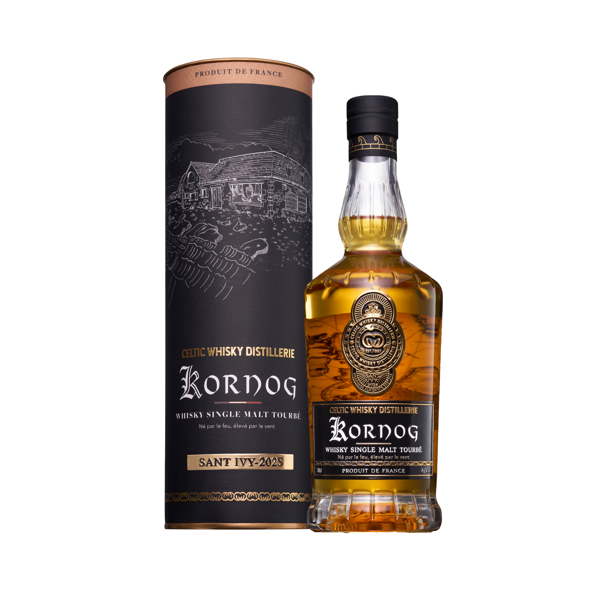 Le nez ne peut que rappeler le lieu où ce Kornog a lentement maturé : l’iode et les notes de Silex rappellent le Sillon de Talbert tout proche ! Des notes de thé noir, de vanille et d’épices, de gingembre, promettent une grande complexité pour la dégustation à venir !